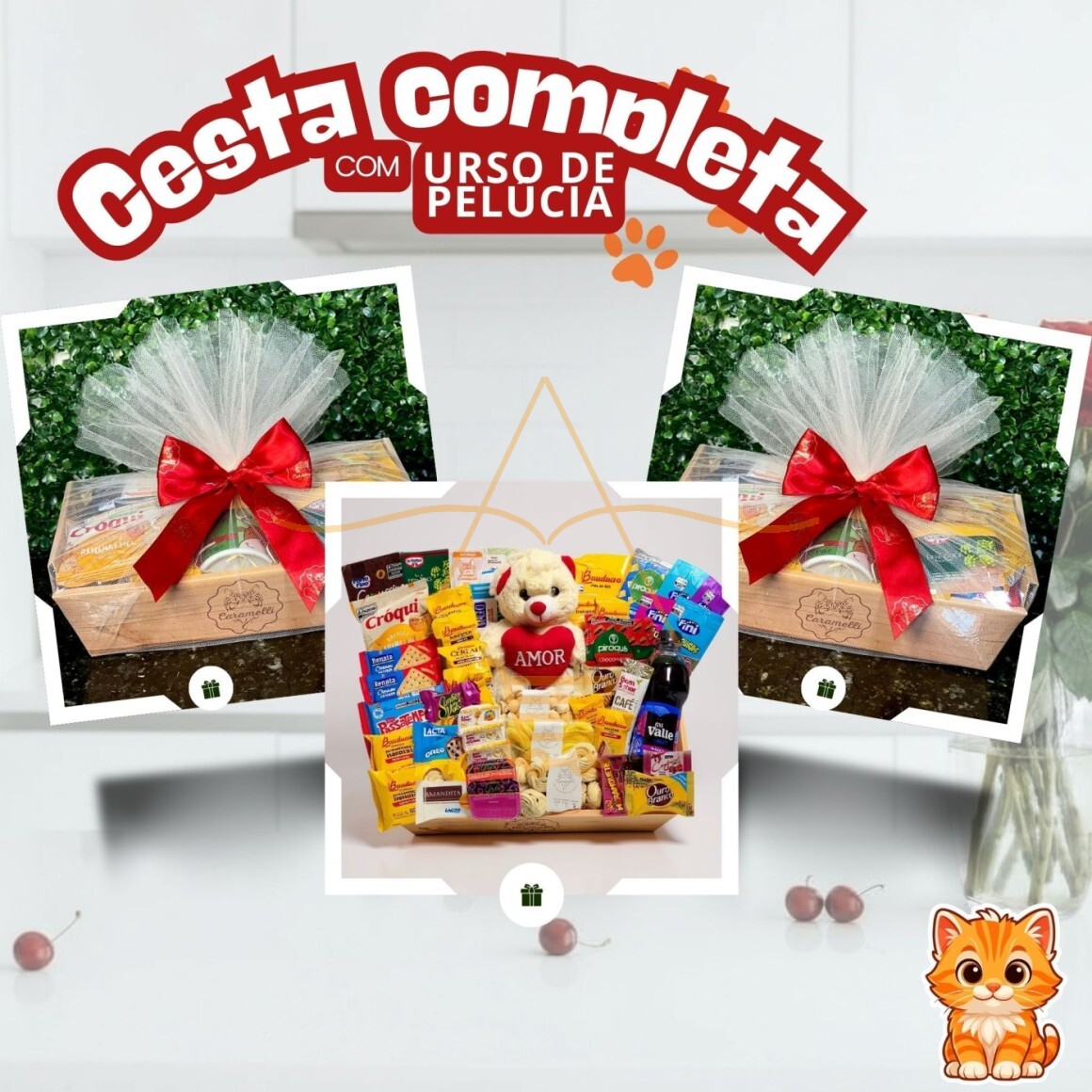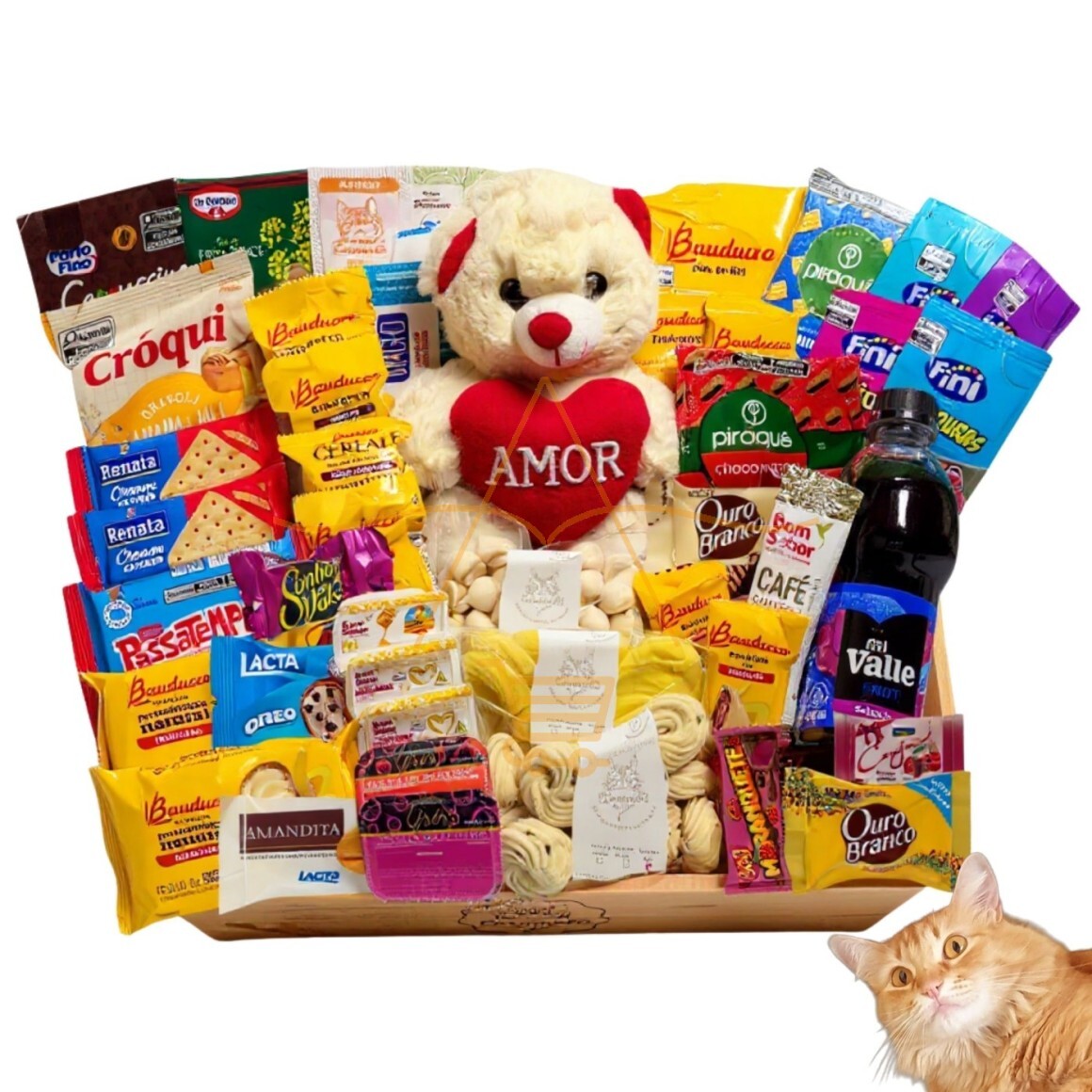 Maravilhosa Cesta para Café da Manhã com 30 itens e Chocolate 22 Itens Com Urso Pelucia!!