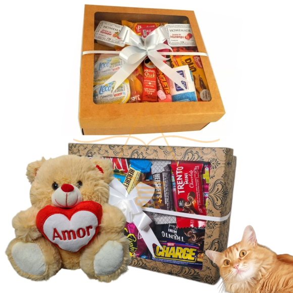 Maravilhosos Caixas Presentes 1 Café da Manhã com 30 itens + 1 Chocolate com 22 Itens + Pelucia Urso!! Ideal para Presente, Lembrança!