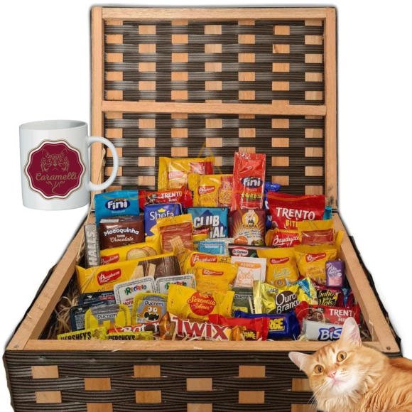 Cesta No Baú Caneca Café Da Manhã E Chocolate Presente 52 Itens