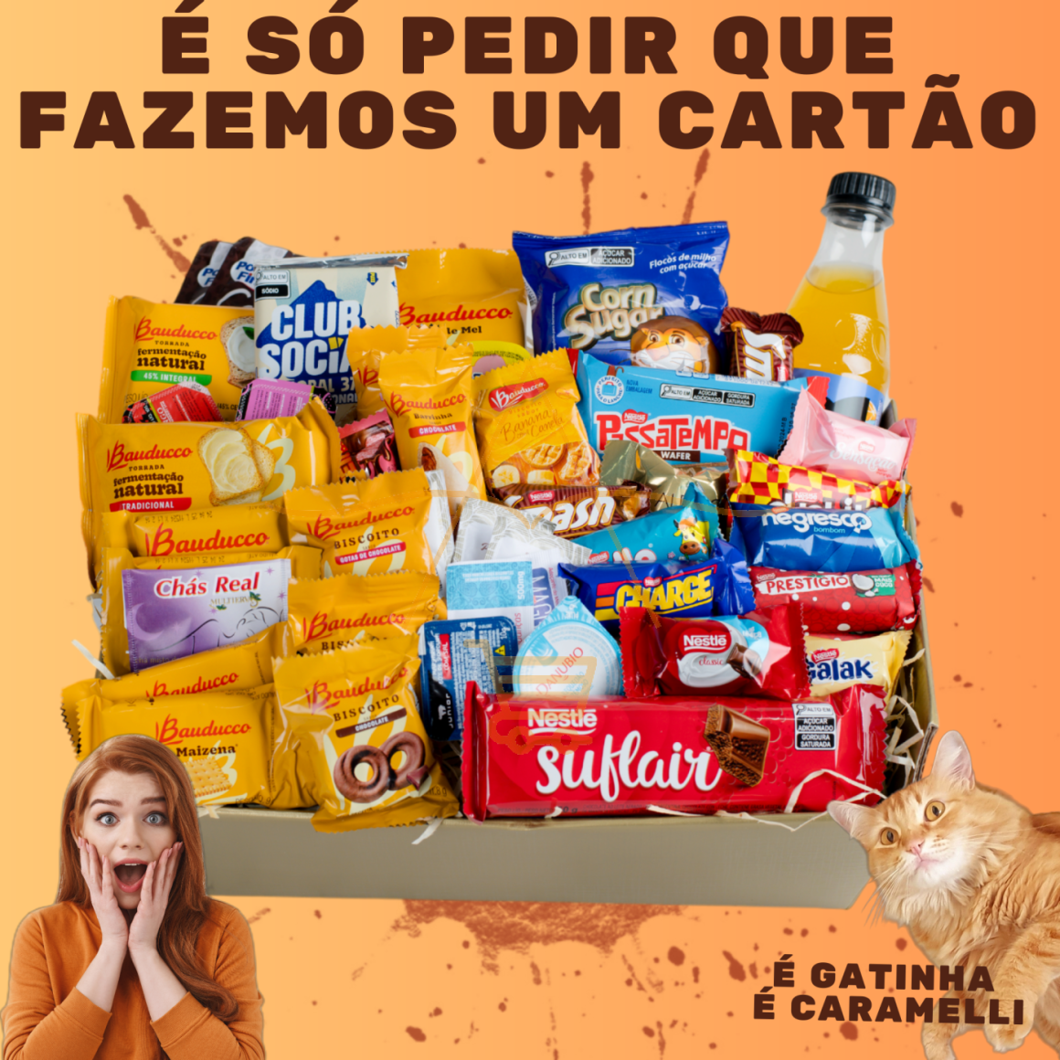 Maravilhosa Cesta para Café da Manhã com 30 itens e Caixa de Chocolate Aberta com Suflair!!
