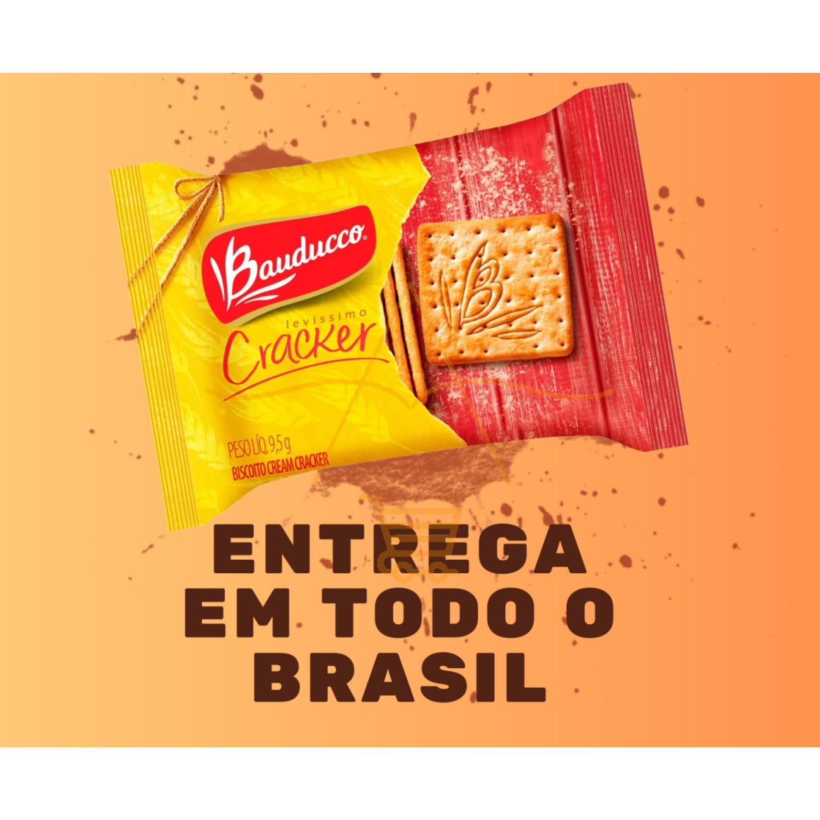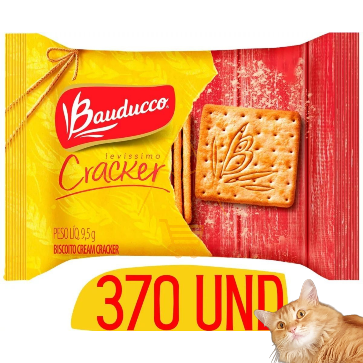 Biscoito Cream Cracker Bauducco com 370 sachês individuais de 9,5g cada.
