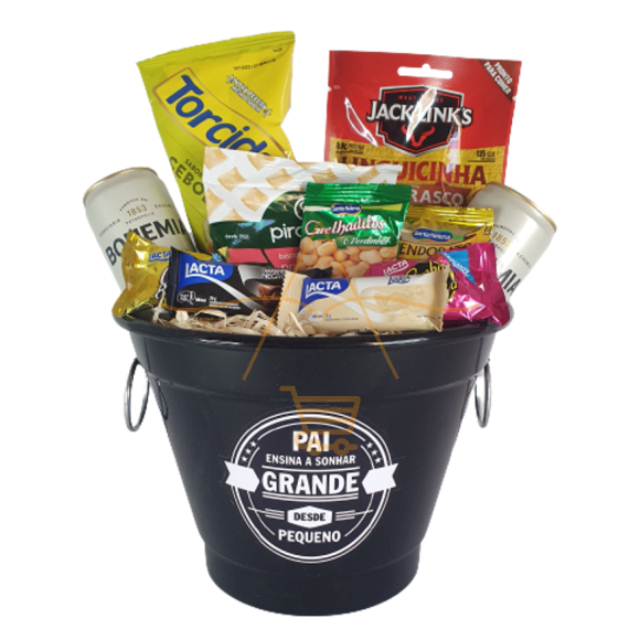 Lindo kit boteco com balde de gelo, esse kit conta com aperitivos e um balde de alumínio que preserva sua bebida gelada por muito mais tempo. Temos várias marcas de cervejas famosas para você escolher. Ideal para o Dia dos Pais!