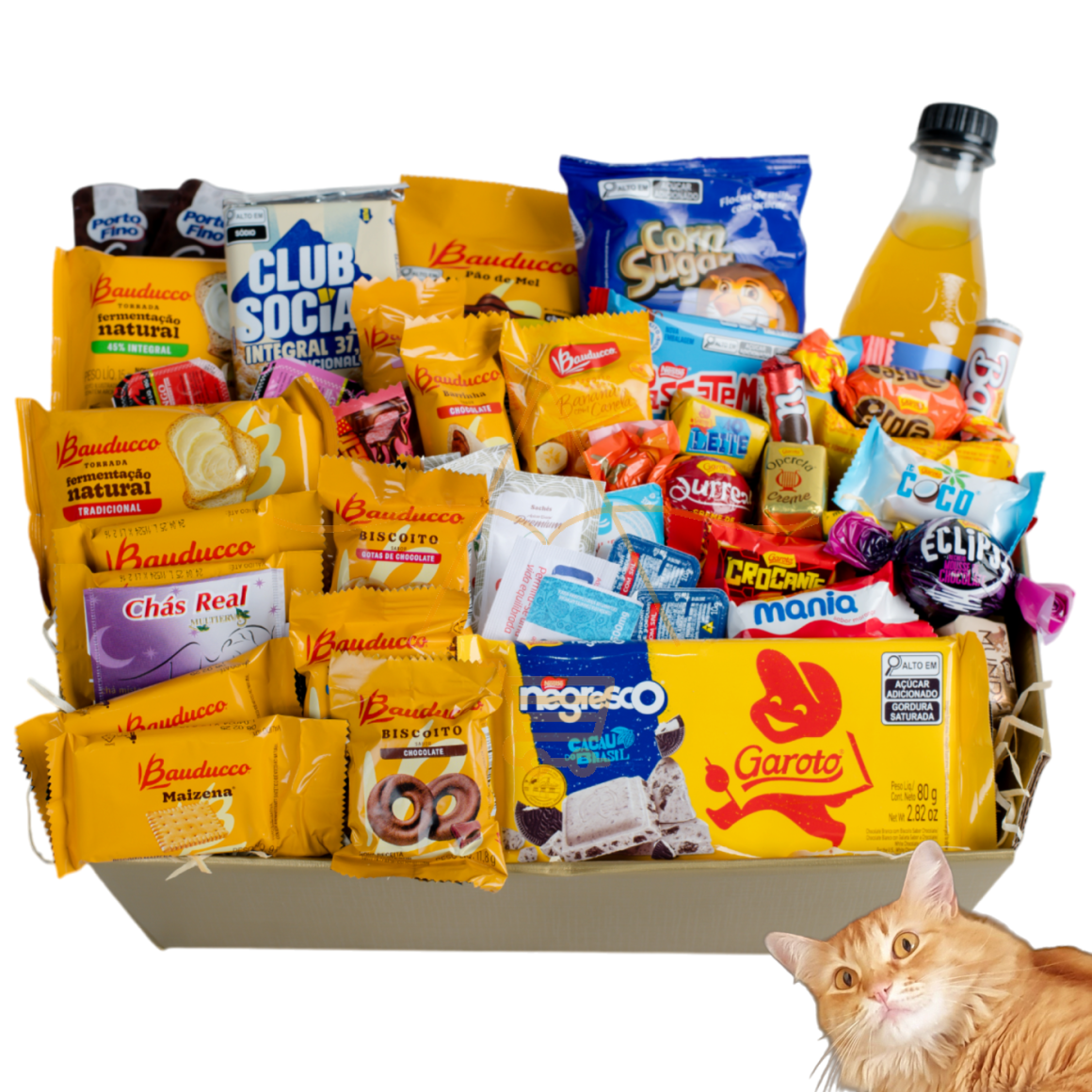 Maravilhosa Cesta para Café da Manhã com 30 itens e Caixa de Chocolate Aberta com Barra de Chocolate da Garoto!!