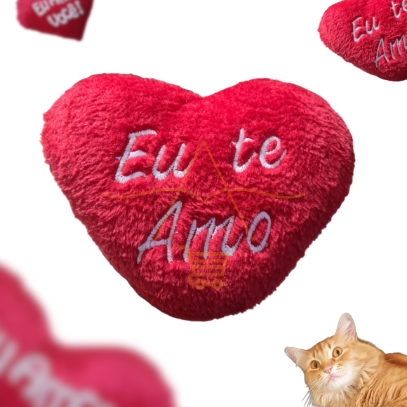 Almofada de pelúcia coração, com os dizeres bordado " Eu Te Amo".
