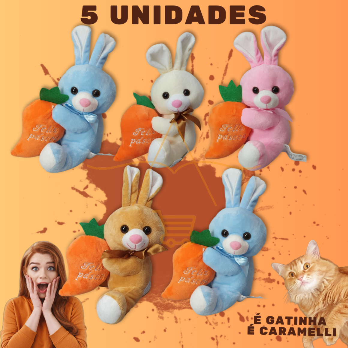 •5 Pelucias de Coelho com Cenoura Tamanho P